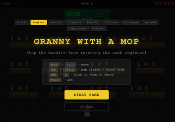 You play as a tough shop granny defending her store from waves of bandits - armed with a mop and shelfs full of throwable products!