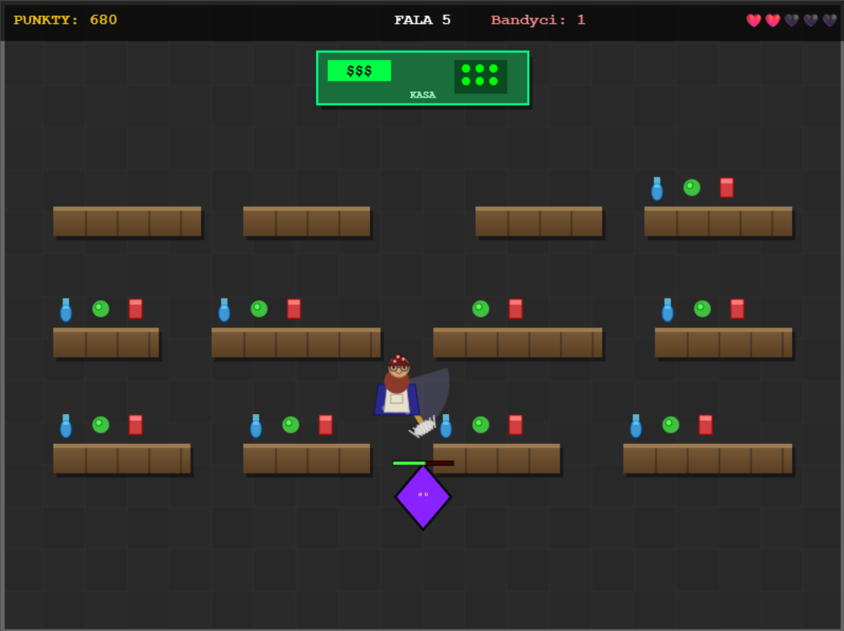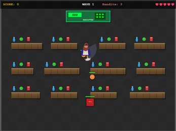 • 3 bandit types: fat heavies, quick runners and mighty bosses (every 5th wave)